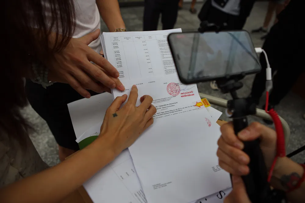 Buổi livestream có khoảng 20 nguời có mặt tại trụ sở ngân hàng. Nhân viên ngân hàng phải liên tục nhắc nhở mọi người giữ khoảng cách.