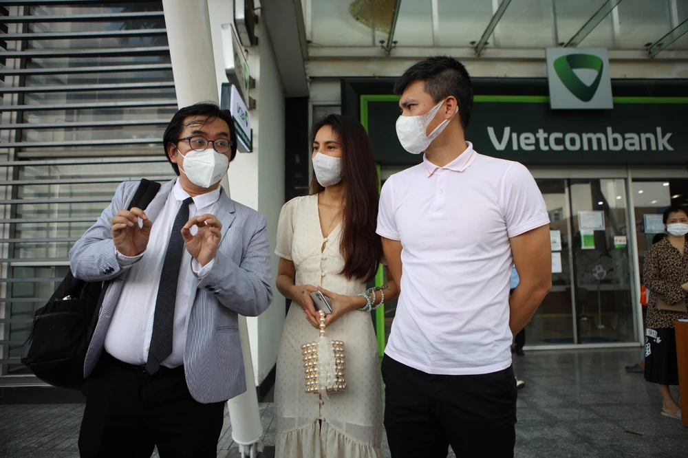 Thủy Tiên - Công Vinh tay trong tay đến ngân hàng thực hiện sao kê.