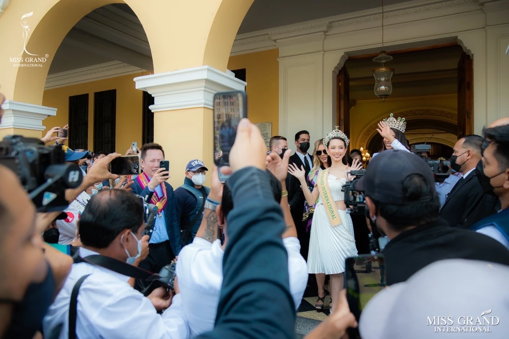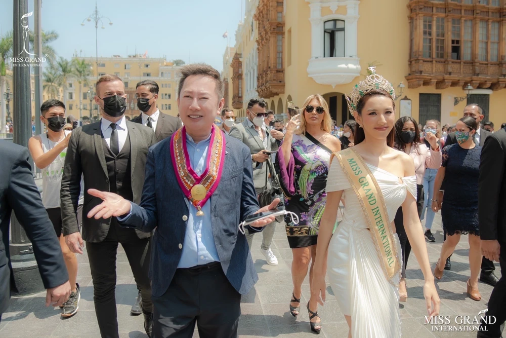 Thuỳ Tiên cùng chủ tịch Nawat còn trao vương miện và sash cho Miss Grand Peru 2022 - Janet Leyva trong buổi lễ chào đón. Bắt đầu hành trình tìm kiếm những cô gái sáng giá cho vị trí kế nhiệm Thuỳ Tiên tại Miss Grand International 2022.