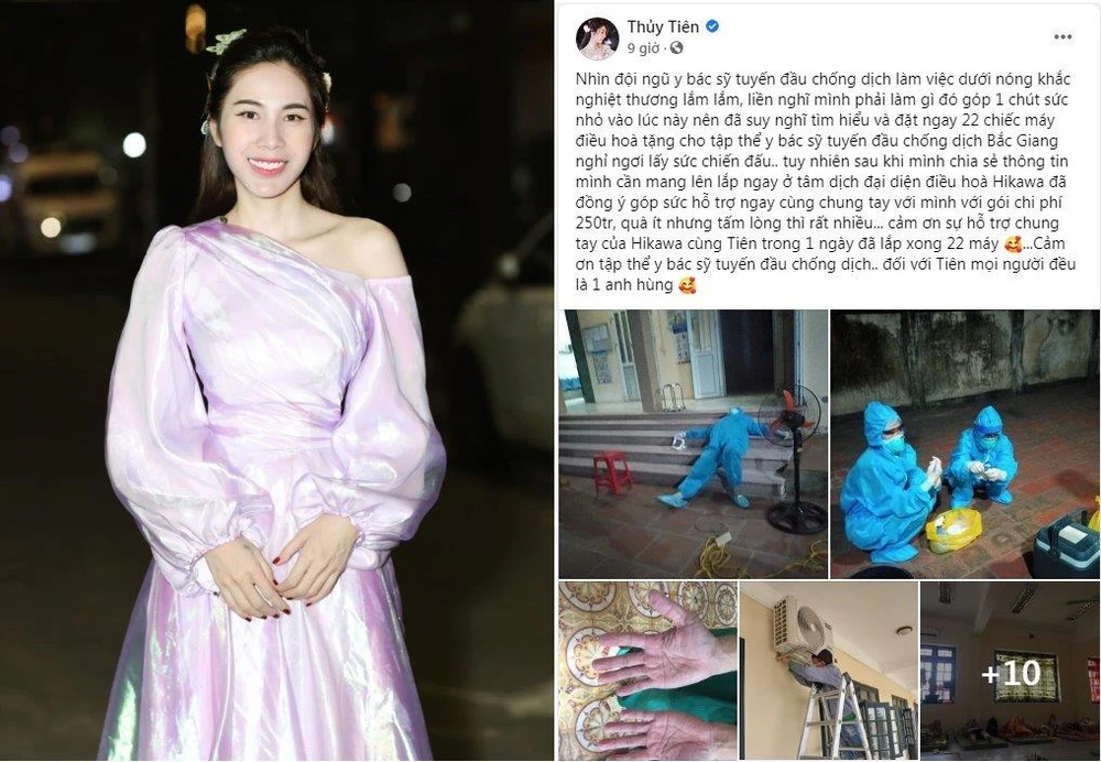 Cũng trong tối cùng ngày, trên fanpage cá nhân ca sĩ Thủy Tiên đã đăng tải bài viết cho biết mình đã đặt 22 chiếc máy điều hoà tặng cho tập thể y bác sĩ nơi tuyến đầu chống dịch Bắc Giang và nhận được sự hỗ trợ từ đại diện điều hoà Hikawa.