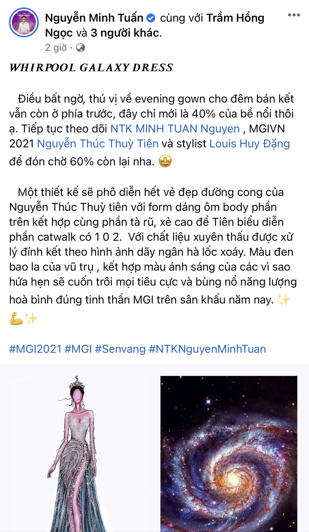 Bộ cánh được đặt tên là Whirlpool Galaxy Dress - Lốc xoáy ngân hà hoàn mỹ, lấy ý tưởng từ xoáy nước thiên hà, nơi hình thành của các vì sao vừa lấp lánh vừa huyền bí trong vũ trụ bao la.