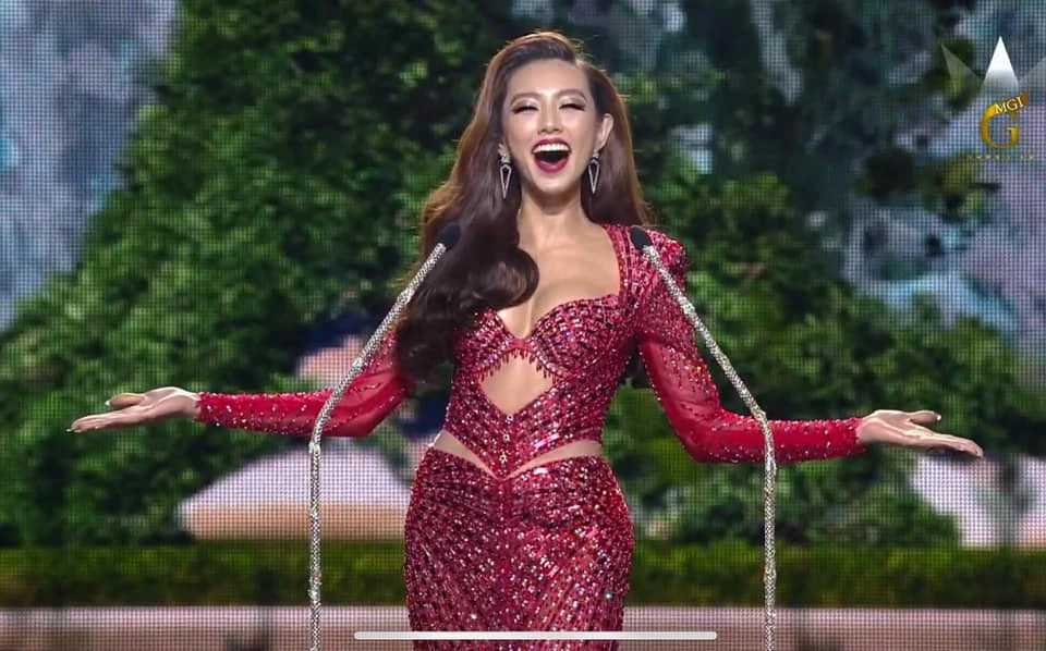 Thuỳ Tiên nổi bật với đầm đuôi cá màu đỏ, thiết kế cut-out tôn hình thể, những đường cong quyến rũ của người đẹp. Bộ trang phục dạ hội của đại diện Việt Nam nhận về nhiều lời khen của người hâm mộ sắc đẹp.