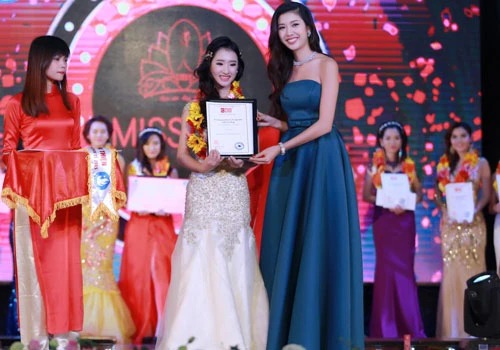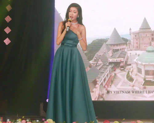 Thúy Vân trình diễn ca khúc My Vietnam mà cô tự sáng tác trong quá trình chuẩn bị cho cuộc thi “Hoa hậu Quốc tế 2015”.