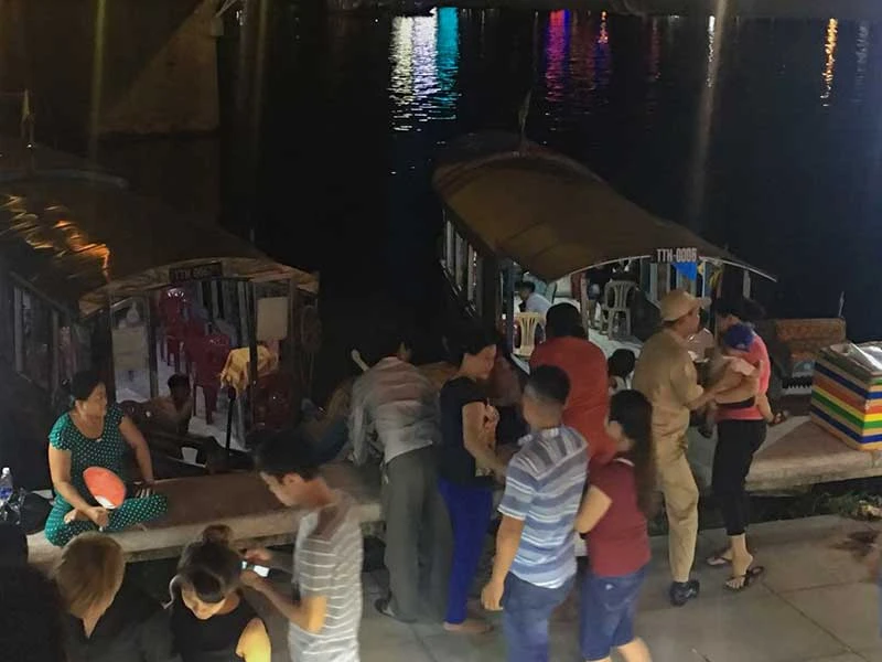 Khoảng 20 giờ ngày 19-4, chúng tôi cùng nhiều khách khác lên thuyền mang số hiệu TTH 03… Sau khi trả 10.000 đồng, khách phải leo qua dải lan can cao khoảng 0,5 m để bước xuống thuyền. Bên trong khoang thuyền có hơn 10 chiếc áo phao được bọc trong bao nylon, gắn ở trên trần chiếc thuyền và vài chiếc phao cứu sinh.