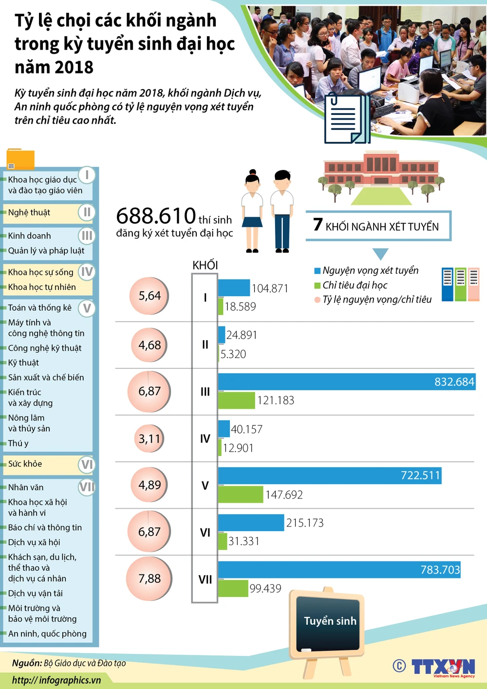 Tỉ lệ chọi các khối ngành trong kỳ tuyển sinh đại học năm 2018