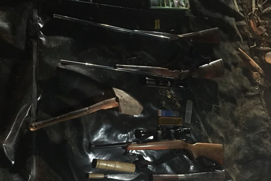 Kiểm lâm phát hiện ông Premchai mang theo nhiều súng và vũ khí vào khu bảo tồn. Ảnh: BANGKOK POST