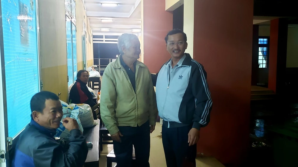 Trong đêm, lãnh đạo phường Hòa Hải cũng đã đến động viên bà con yên tâm tránh bão tại Trường Tiểu học Lê Văn Hiến. Ảnh: T.AN