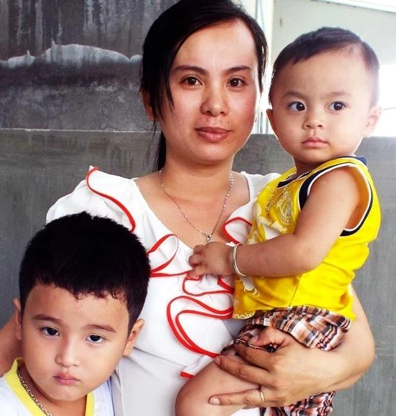 Vợ và hai con của thiếu úy Nguyễn Ngọc Hưởng. Ảnh: Internet