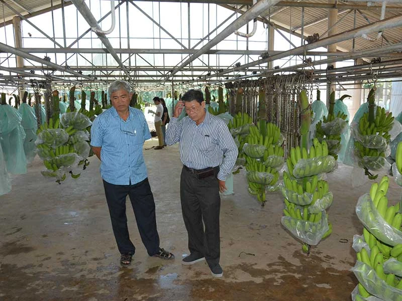 Ông Võ Quan Huy, Giám đốc Công ty Huy Long An, cho biết phải nhờ người thân đứng tên mới có diện tích đất làm nông nghiệp quy mô lớn. Trong ảnh: Trang trại trồng chuối xuất khẩu sang Nhật Bản của ông Huy ở Long An. Ảnh: QUANG HUY