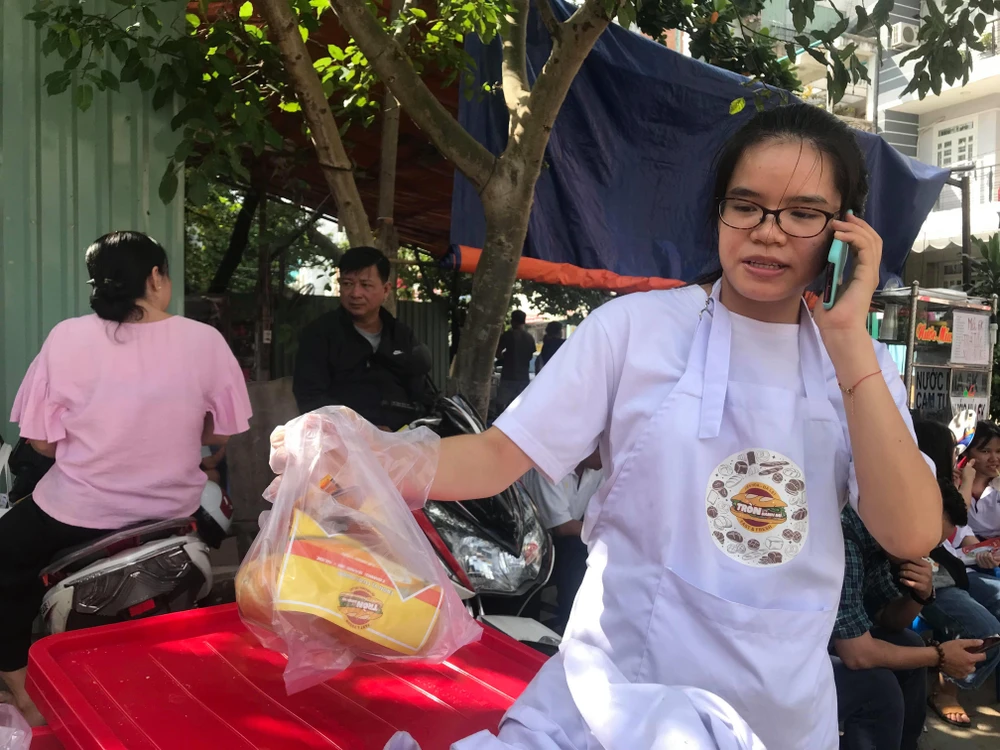 Mua ổ bánh mì từ chị Liên, chị Hồng (phụ huynh sống ở quận Bình Thạnh chở con đi thi) cho hay: "Thực tế, hiện nay vẫn có những gia đình có hoàn cảnh còn khó khăn, những suất hỗ trợ như này ấm lòng lắm. Tôi có mua ổ bánh mì chả lụa. Tí tôi ăn, còn cho con ăn cơm cho chắc bụng", phụ huynh này nói.