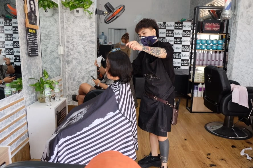 "Mặc dù mỗi lần, tiệm tôi có thể làm từ 4-5 khách/lần nhưng với tình hình dịch còn phức tạp, tôi chỉ đón 1 khách một lần vào tiệm, và chỉ nhận các khách quen đặt trước, đã tiêm ít nhất 1 mũi vắc-xin hoặc là F0 đã khỏi bệnh.