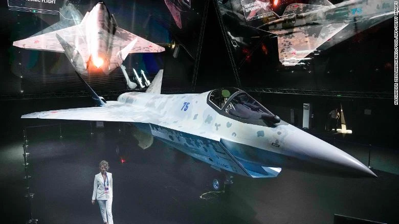 Nguyên mẫu máy bay chiến đấu mới Checkmate của Nga tại cuộc triển lãm hàng không và vũ trụ quốc tế MAKS-2021 hôm 20-7. Ảnh: CNN