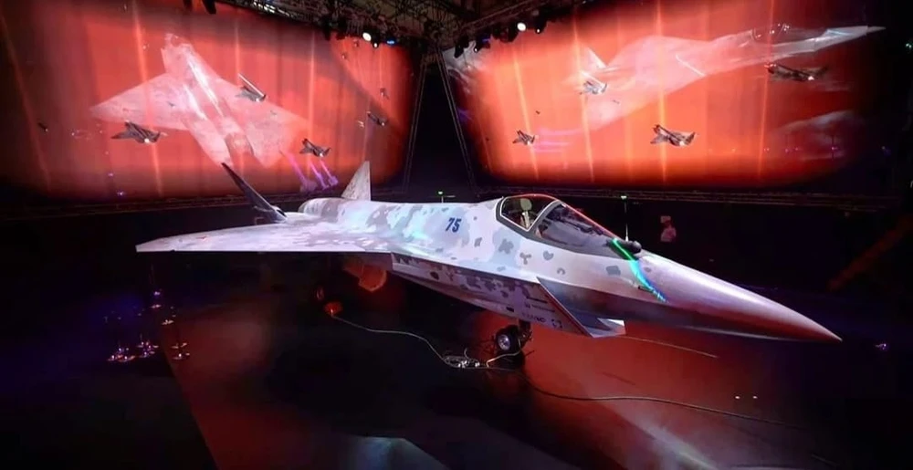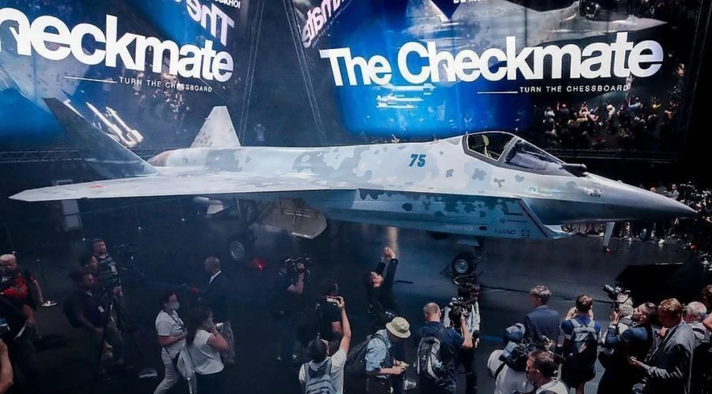 Tiêm kích mới Checkmate của Nga tại triển lãm hàng không quốc tế MAKS 2021. Ảnh: TWITTER