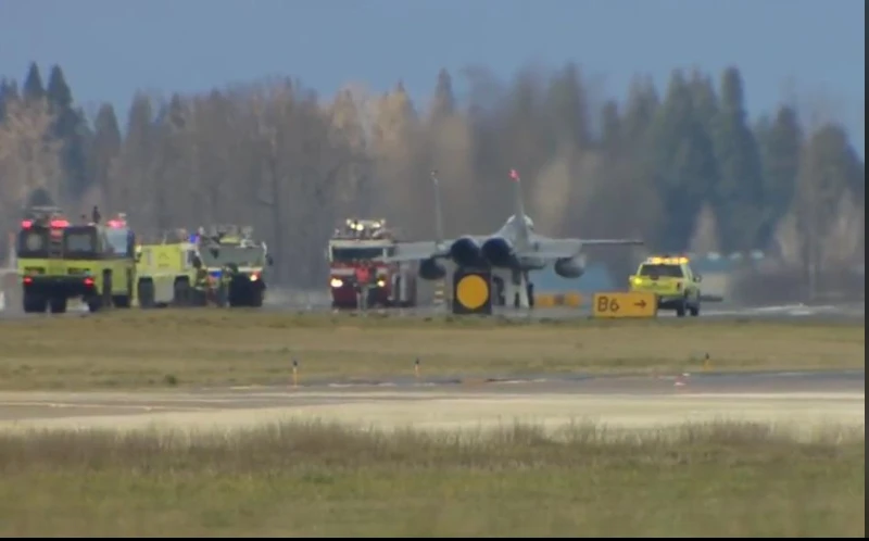 Tiêm kích F-15C hạ cánh an toàn xuống sân bay Portland. Ảnh: KATU