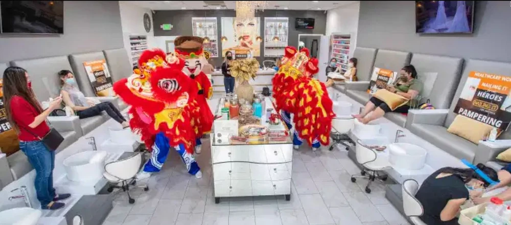 Tiệm nail Studio 18 ở TP Tustin, thuộc quận Cam, bang California (Mỹ) đã khai trương hôm 19-6 với một số vị khách đặc biệt: những tay trống và vũ công múa lân.