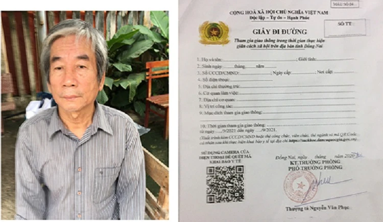 Ông Nguyễn Xuân Phẩm và giấy đi đường làm giả. Ảnh: CAĐN