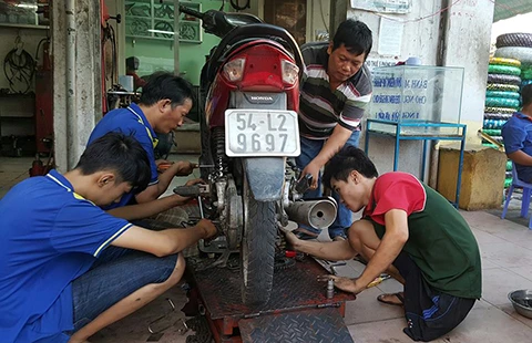 Đến nay anh Thành đã là thợ giỏi của tiệm. Con trai anh năm nay 16 tuổi cũng đang học nghề ở đây. Anh Thành cho biết: “Lương của tôi giờ cũng khá, 8 triệu đồng/tháng. Khi nào đủ điều kiện thì tôi mở tiệm riêng. Nhưng giờ vẫn gắn bó ở đây, vì vợ chồng anh Phúc rất tốt. Giúp được ai là giúp liền”.