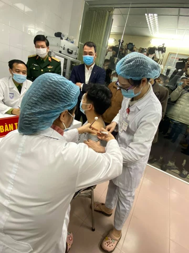 Sáng 17-12, tại Học viên Quân Y, 3 tình nguyện viên đầu tiên sau khi được lựa chọn kỹ lưỡng đã được tiêm thử nghiệm mũi vaccine ngừa COVID-19 của Việt Nam với tên gọi Nano Covax trên người tình nguyện ở giai đoạn 1. Đây là giai đoạn 1 của chương trình thử nghiệm lâm sàng vaccine Nano Covax.