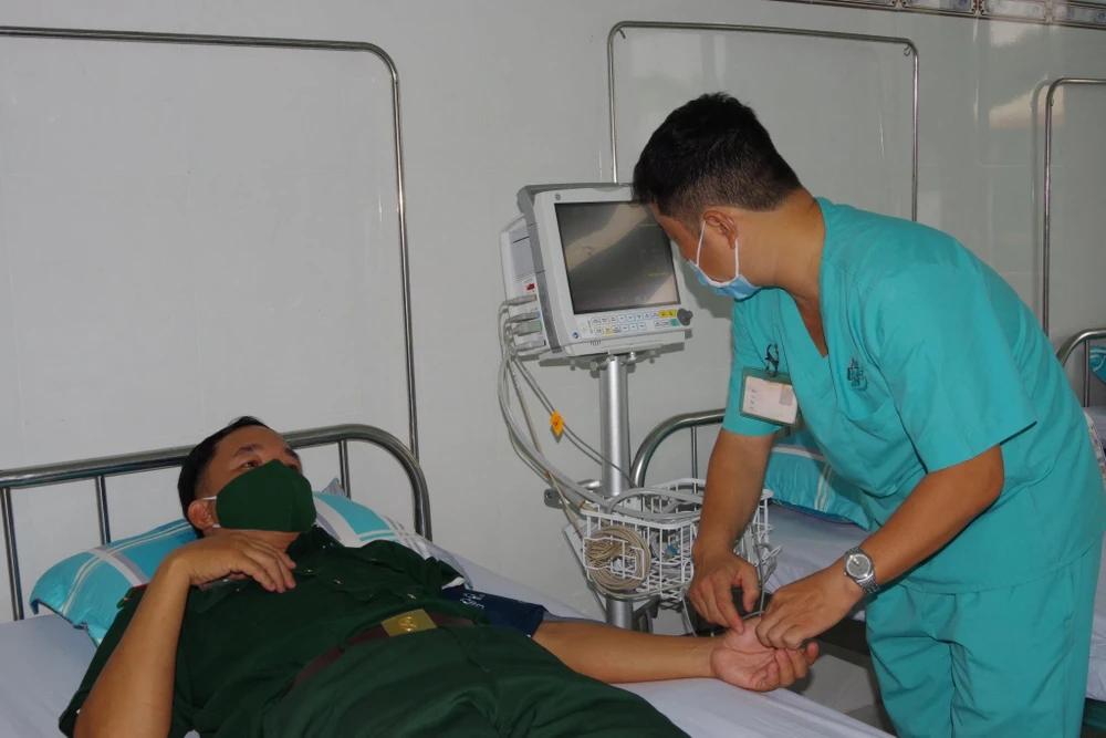 Sau khi tiêm vaccine phòng COVID-19, cán bộ, chiến sĩ tỉnh Tây Ninh được theo dõi sau tiêm. Ảnh: A. Chính