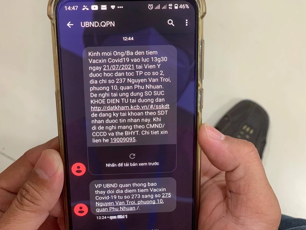 Chiều 21-7, chị Hà Thị Thu Nguyệt (45 tuổi, ngụ quận Phú Nhuận), cán bộ quận Phú Nhuận hồi hộp đến điểm tiêm vaccine COVID-19 của Viện Y dược học Dân tộc TP.HCM theo tin nhắn đặt hẹn trước.