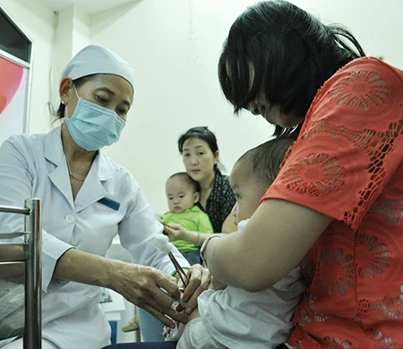 Nhiều phụ huynh bỏ vaccine Quinvaxem, đưa con đi tiêm vaccine dịch vụ ngày 26-12. Ảnh: TÙNG SƠN