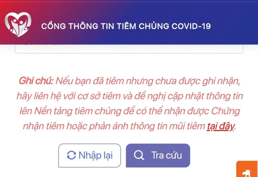 Bạn đọc có thể phản ánh bằng cách gửi thông tin lên hệ thống nếu đã tiêm chủng mà không có dữ liệu. Ảnh: VT