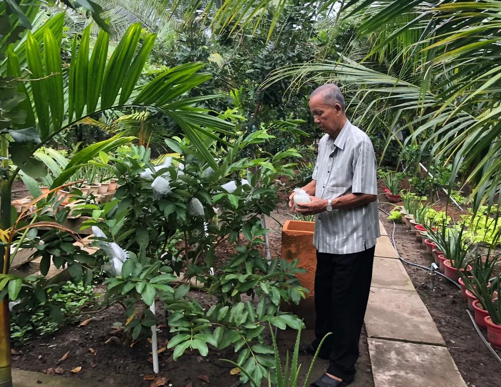 Ông Hai Nghĩa tại vườn nhà sau khi nghỉ hưu ở Bến Tre. Ảnh: THÚY THÚY