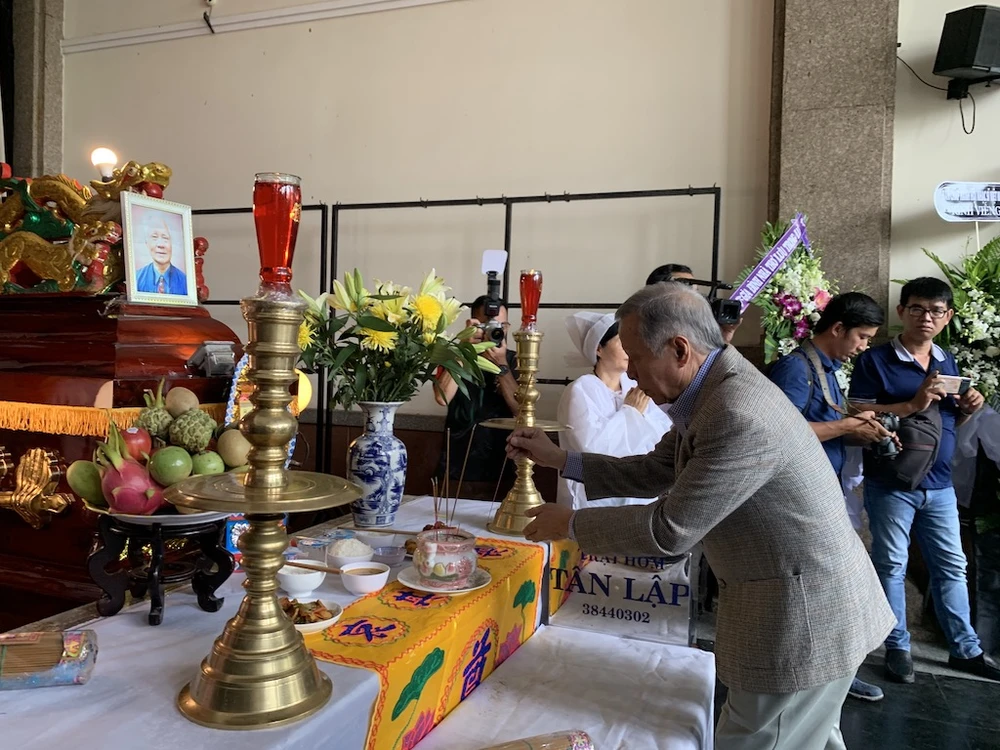 Đại diện Hội Nhạc sĩ Việt Nam, Hội Âm nhạc TP.HCM, Sở Văn hóa - Thể thao TP.HCM tại lễ tiễn đưa nhạc sĩ Nguyễn Văn Tý vào sáng 29-12. Ảnh: HỮU KHOA