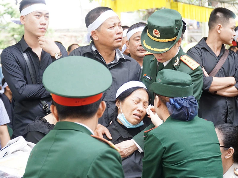 Thân nhân các liệt sĩ khóc nghẹn tại lễ tang ở BV Quân y 268. Ảnh: BÙI TOÀN