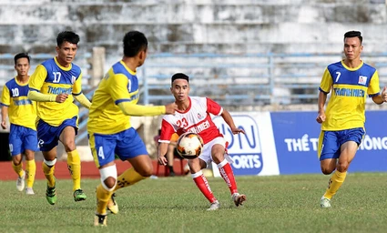 U-21 Đồng Tháp (áo vàng) tham dự giải đấu trẻ. ẢNH: VFF