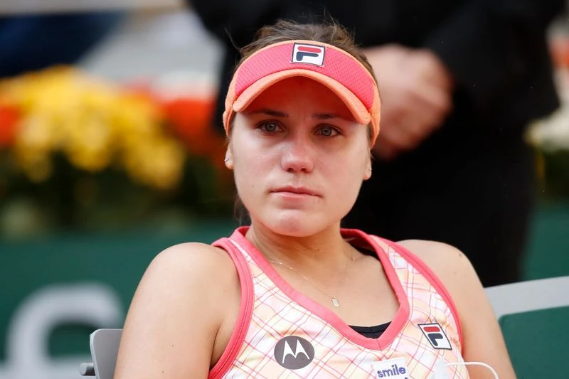 Hạt giống số 4 Sofia Kenin rơi nước mắt sau thất bại tại chung kết đơn nữ Pháp mở rộng 2020. ẢNH: FFT