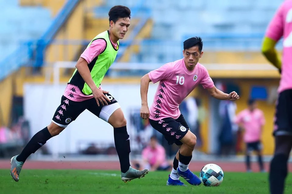 ĐKVĐ V-League Hà Nội FC tập chay mùa dịch. ẢNH: NGỌC DUNG