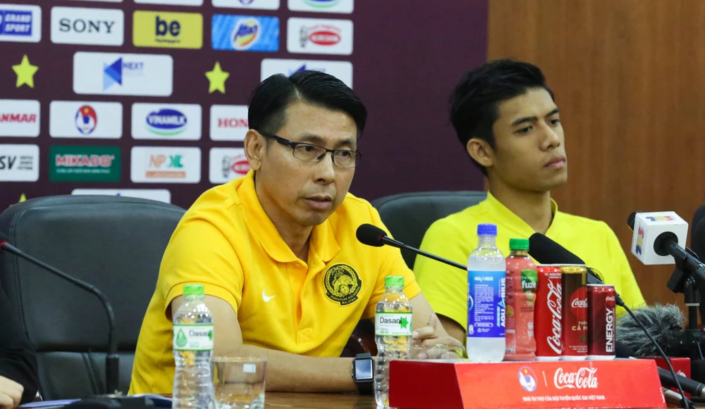 Trước trận, HLV Tan Cheng Hoe tuyên chiến Malaysia sẽ giành điểm nhưng sau đó ông không tham dự buổi họp báo sau thất bại. Ảnh: CTV