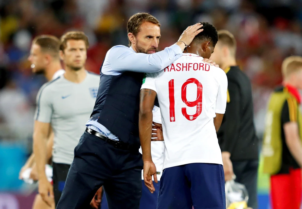 HLV Southgate và tiền đạo Rashford. Ảnh: REUTTERS