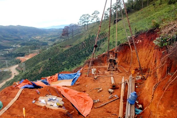 Vị trí khoan từ đỉnh đồi xuống khu vực hầm sập . Ảnh: Phạm Duy