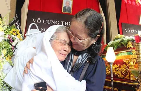 Phút tiễn biệt, NSƯT Phi Điểu - vợ nhạc sĩ Phan Nhân không cầm được nước mắt. Ảnh: THANH TUYỀN