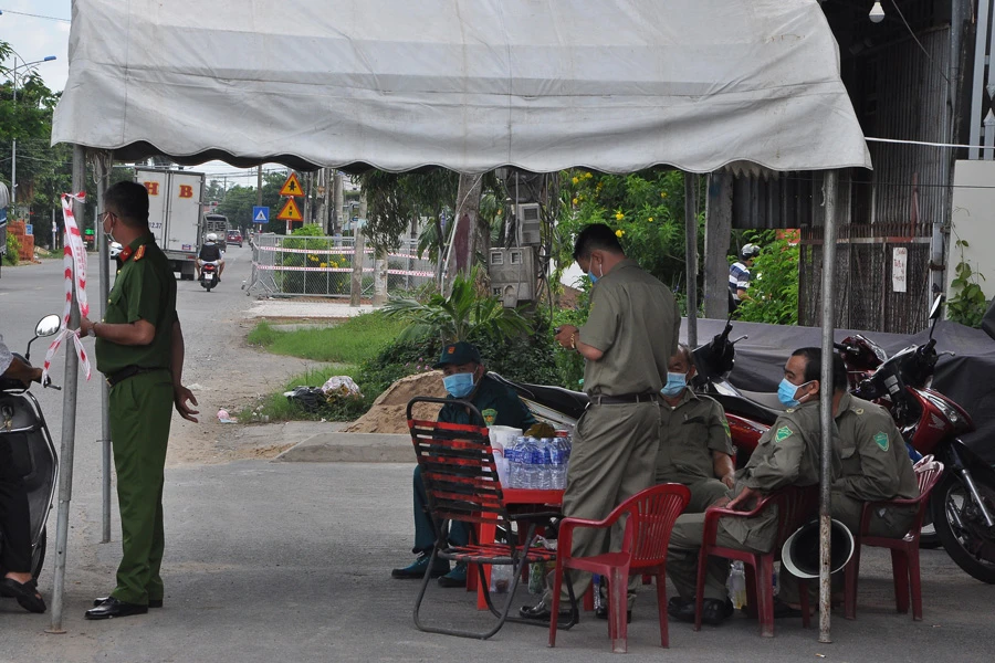 Phong tỏa khu vực khu phố 3, phường 9, TP Mỹ Tho nơi nghi ngờ có người mắc COVID-19. Ảnh: PV