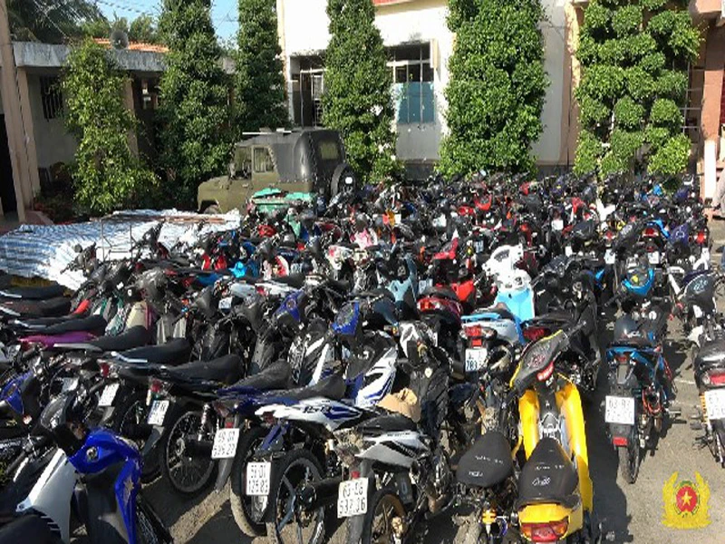 Hơn 100 xe máy bị lực lượng chức năng tạm giữ. Ảnh: Công an Tiền Giang