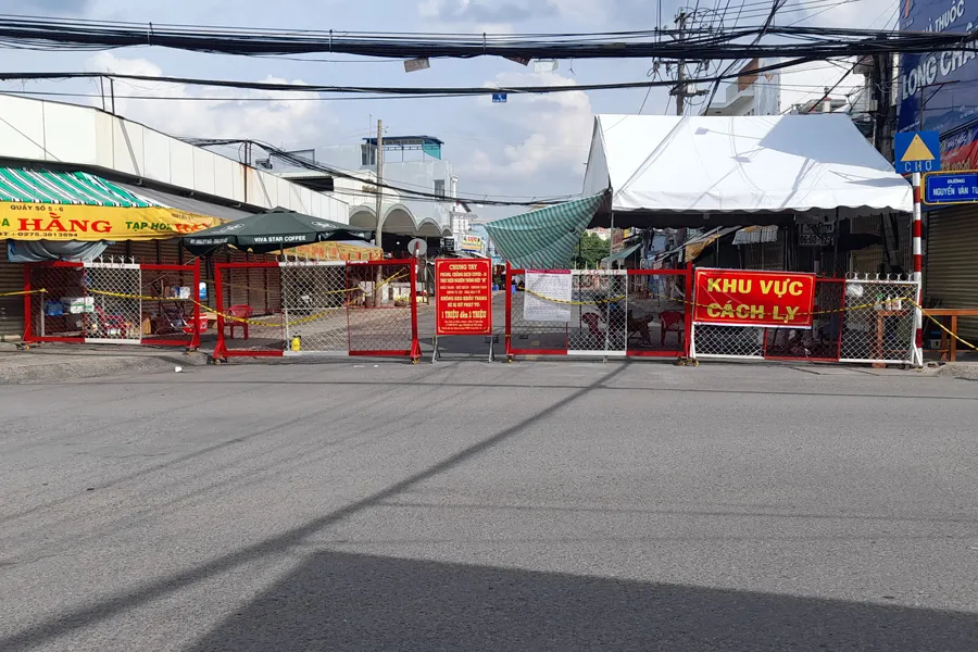 Phong tỏa khu vực có liên quan đến ca nhiễm COVID-19 tại Bến Tre. Ảnh: ĐH