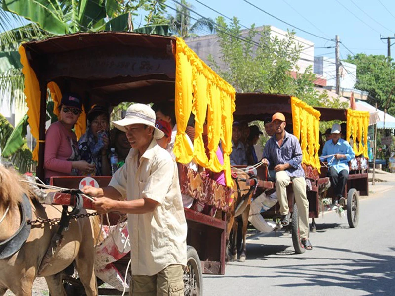 Du lịch xe ngựa một loại hình du lịch khá thú vị đối với du khách ở Cồn Thới Sơn.