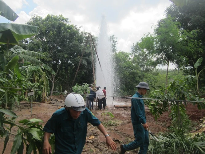 Trước đó, khoảng 13 giờ ngày 1-6, khi các thợ khoan giếng nước đang khoan giếng trong vườn nhà ông Bảnh ở độ sâu 80m thì bất ngờ dòng nước phụt lên khỏi mặt đất. Các thợ khoan rút ống khoan lên khỏi mặt giếng thì nước phun cao 20m. Sự việc đã thu hút rất đông người dân hiếu kỳ đến vườn nhà ông Bảnh coi, chụp ảnh và bình luận, chia sẻ trên mạng xã hội.