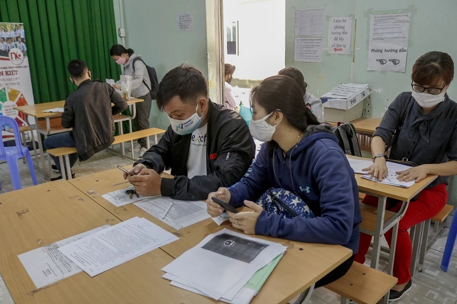 Người lao động đến Trung tâm Dịch vụ việc làm TP.HCM để làm thủ tục hưởng trợ cấp thất nghiệp. Ảnh: NGUYỆT NHI