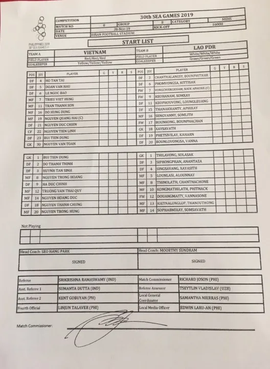 Bàn thắng bị từ chối!!!!!!!! Phút 20, Văn Hậu thoát xuống tâng bóng qua đầu thủ môn Lào ghi bàn nhưng không được trọng tài công nhận vì lỗi việt vị. Tuy nhiên, ở tình huống này, Văn Hậu hoàn toàn không ở thế việt vị.
