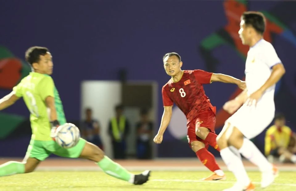 Hùng Dũng có bàn thắng đầu tiên tại SEA Games 30.
