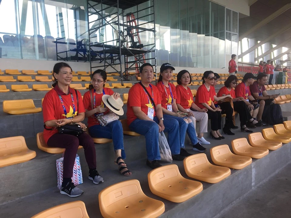 Một số CĐV Việt Nam đến sân sớm cổ vũ cho thầy trò ông Park. ẢNH: MINH TUẤN