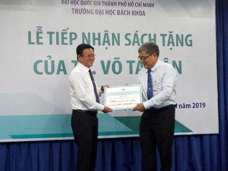 Thay mặt TS Võ Tá Hân gửi tặng sách cho sinh viên ĐH Bách khoa, ông Võ Thành Chất, Phó Chủ nhiệm Ủy ban Về người VN ở nước ngoài TP, mong muốn sau khi tiếp nhận những quyển sách này, thư viện Trường ĐH Bách khoa sẽ tạo điều kiện thuận lợi nhất để sinh viên tiếp cận những kiến thức này.