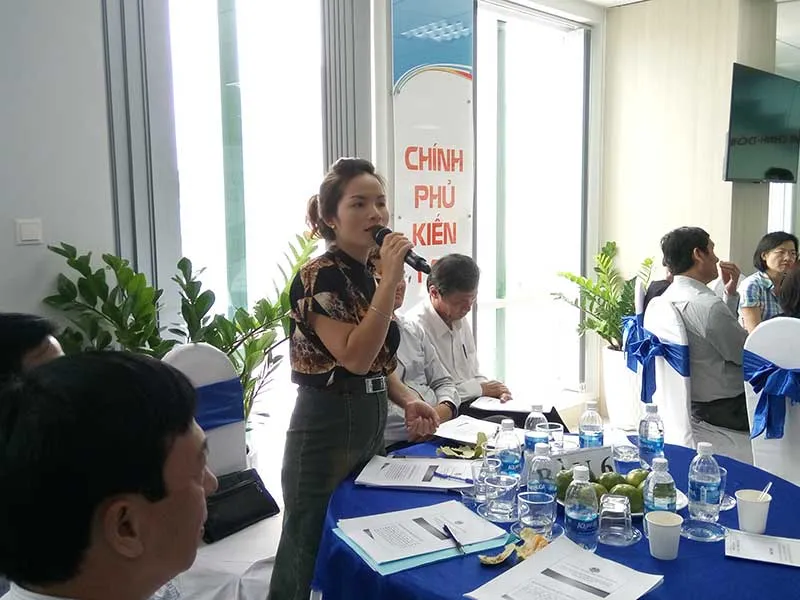 Đại diện một doanh nghiệp nêu ý kiến tại buổi đối thoại với Cục Thuế TP.HCM. Ảnh: QUANG HUY