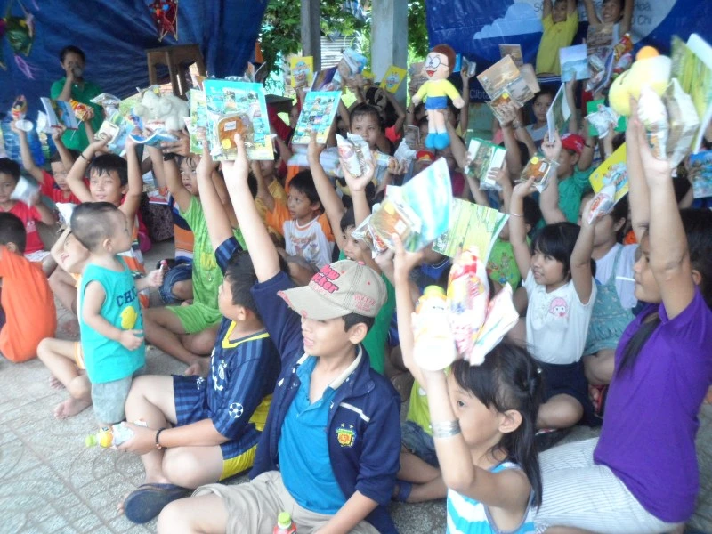 Thảo Vy bảo các em đến chơi với bọn trẻ từ sáng. “Năm nay vui lắm chị, có 60 em trong ấp qua đây chơi Trung thu. Sáng chúng em tổ chức cùng các bé làm đèn, dán hình lên đèn... Các bé rất khéo tay! Năm nay, chúng em có thêm mối bên trường tiểu học, rồi những bạn sinh viên bên khoa Tiểu học, cả các anh chị đã đi làm cũng giúp đỡ chúng em rất nhiều nên có thêm nhiều sách cho các em, còn có cả bộ sách nữa. Đa phần là sách cũ thôi nhưng mong là sẽ bớt gánh nặng đầu năm cho gia đình các em!” - Thảo Vy vui vẻ kể chuyện.