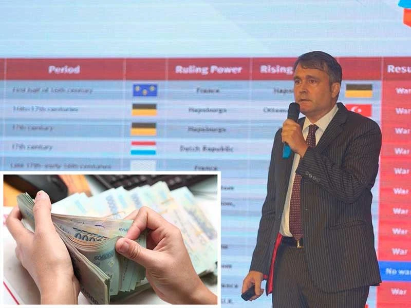 Ông Mathew Smith, Giám đốc nghiên cứu, phân tích Công ty Chứng khoán Yuanta Việt Nam, cho rằng cuộc chiến thương mại Mỹ-Trung ảnh hưởng đến kinh tế (ảnh lớn). Trong bối cảnh nhiều đồng tiền mất giá, tiền Việt vẫn ổn định là điều đáng mừng (ảnh nhỏ). Ảnh: TRẦN LINH