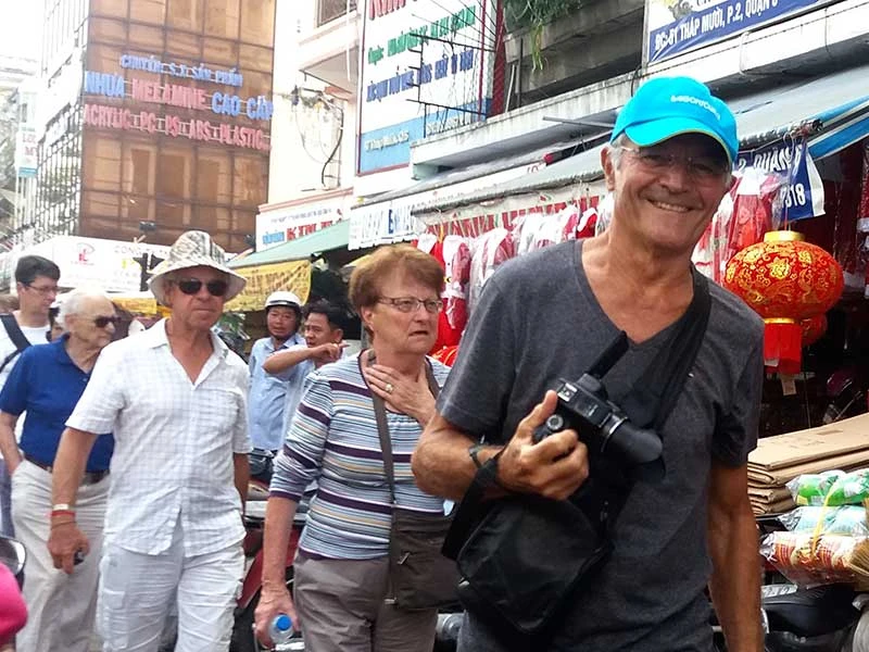 Du khách châu Âu tham quan chợ Bình Tây, TP.HCM. Ảnh: HTD